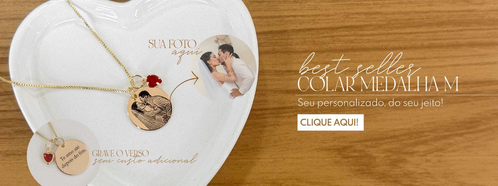Colar Medalha G Personalizada Folheado em Ouro 18kVer Produto